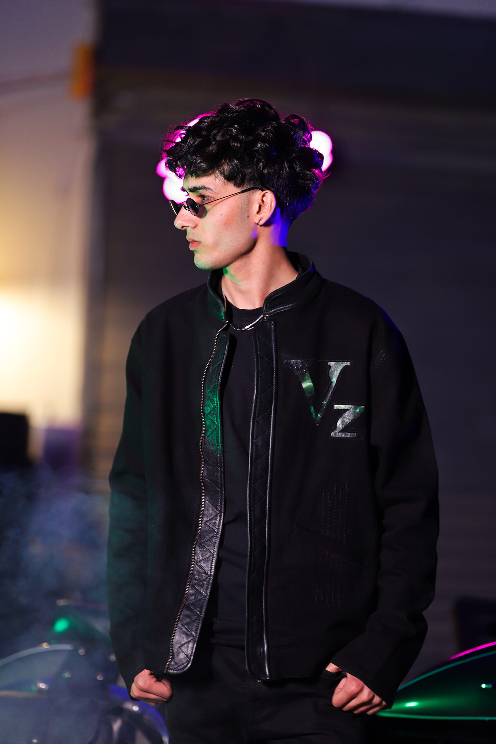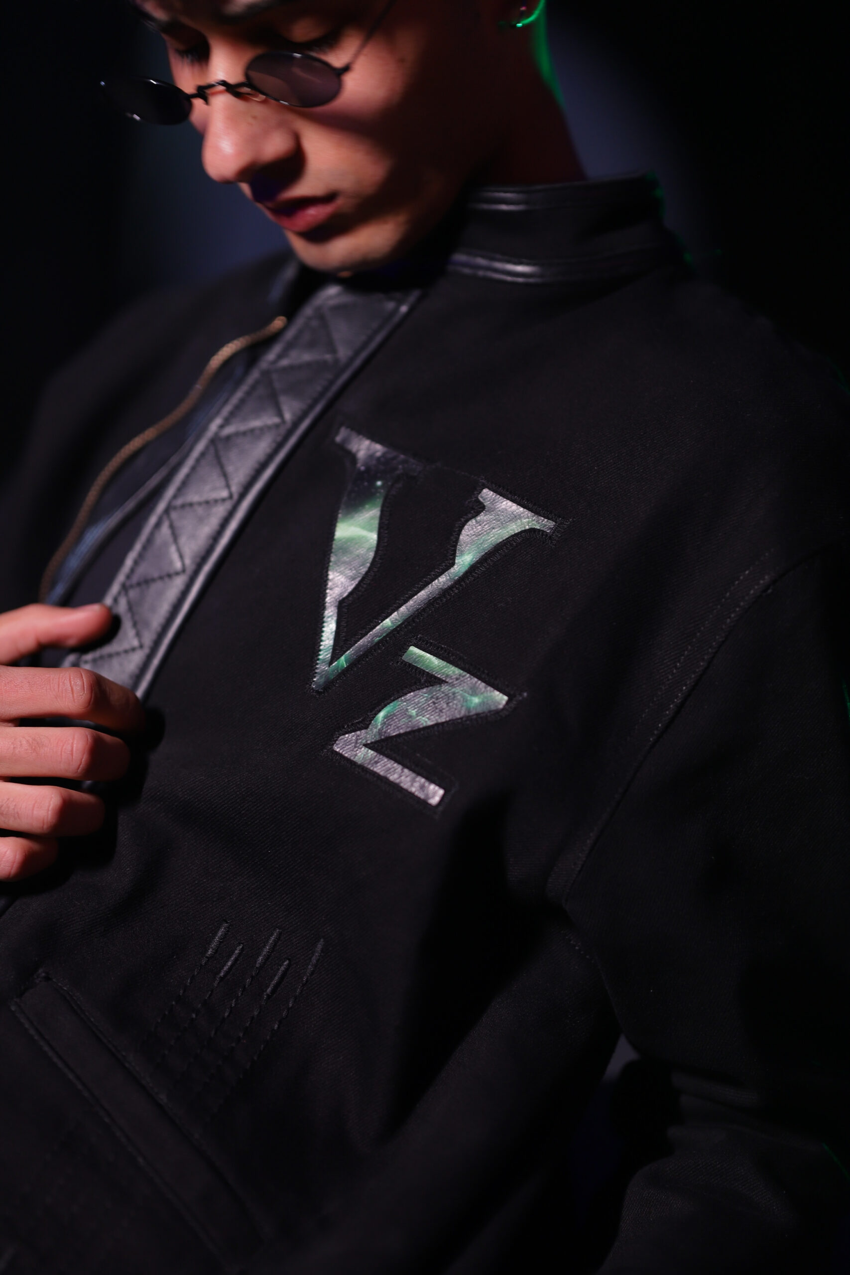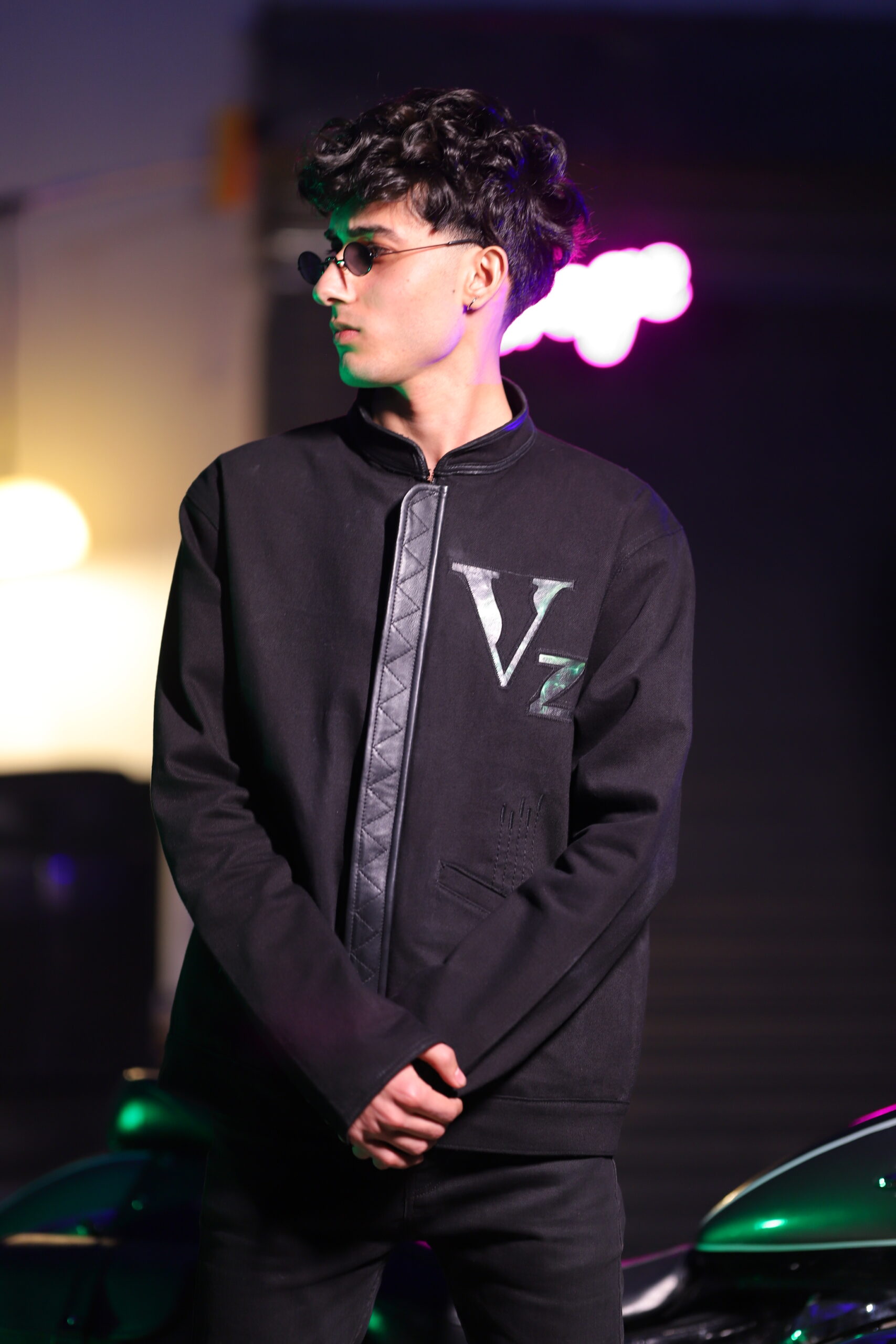 Featuring a structured denim body with a genuine leather collar and front panel, this limited-edition piece commands attention. The front showcases a VZ emblem overlaid with a vibrant California Nebula print, bordered by precise machine embroidery for added depth and definition.